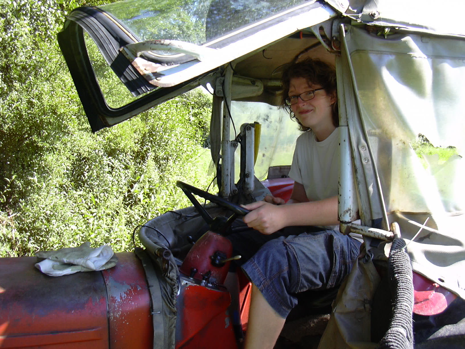 A current photo of me in the laboratory must eventually be taken; here perforce I driving a tractor.