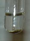 - Now one adds 2-3 drops of silver nitrate. A white sediment is precipitated which immediatly sinks and leaves behind a clear solution. The color of the sediment yellows and then quickly becomes black.